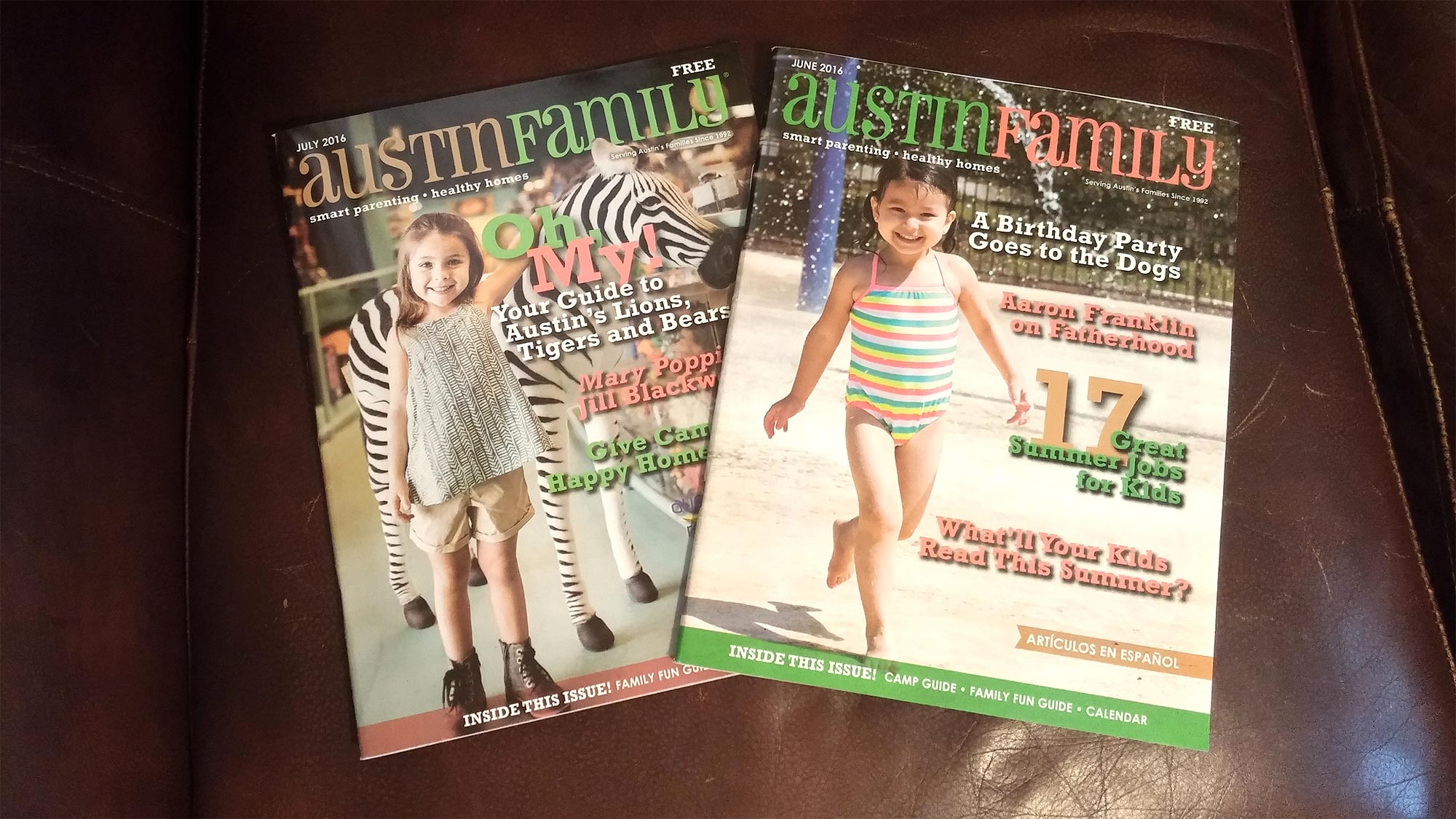 You can see more of my work in the June, July and August* 2016 issues of Austin Family online (*I did not design the August cover).
