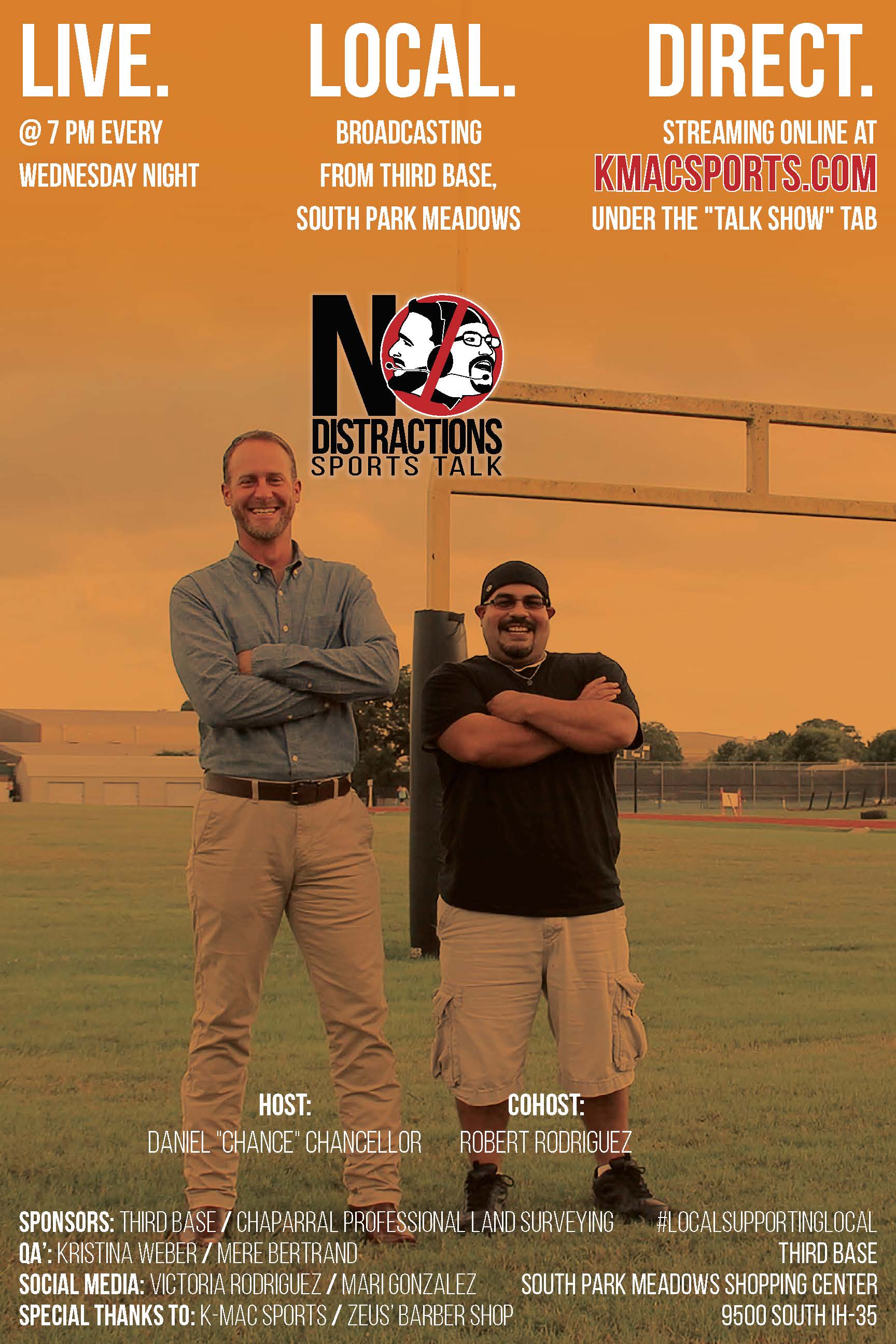No Distractions is an up-and-coming sports talk radio program quickly making a name for itself. The pair needed an industry-competitive logo that plays off the name and hints at the personalities of the show’s, well, personalities. The typography reinforces the focus aspect of the show while the portraits introduce viewers to their hosts, creating an instant connection that will be built upon when they tune in.